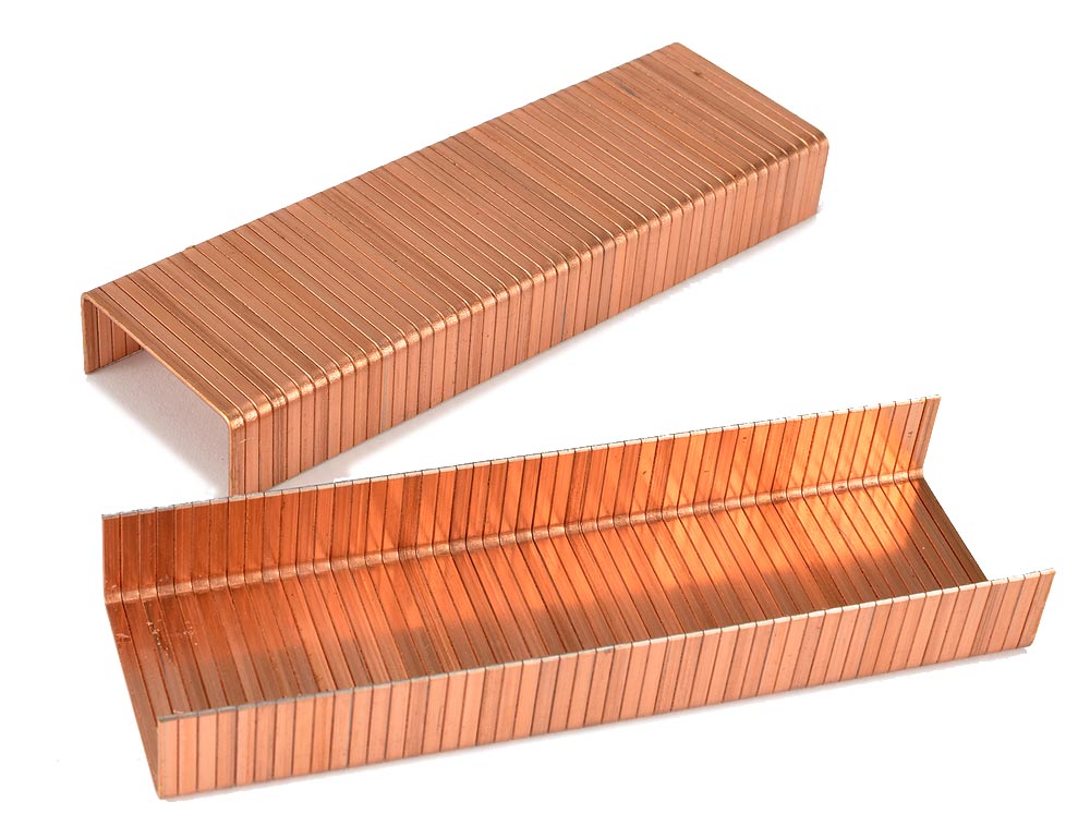 A-58 (A-type) carton staples, 1-3/8-inch crown, 5/8-inch leg length. Liquor Finish (copper), 2,000 stapler per box. Spotnails brand. Interchangeable with Bea 347, JK560-15 staples.