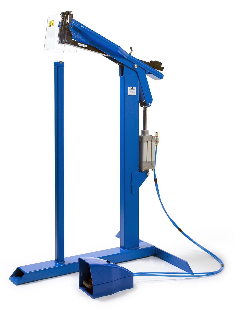 Josef Kihlberg B561 PN air operated bottom box stapler. Designed for bottom closing of larger quantities of corrugated boxes. These heavy duty box staplers are well-built with all parts subject to wear made of tempered steel. The pneumatic cylinder and foot-pedal are engineered for long service life in industrial use. Ideally suited for higher volume continuous or batch production applications.