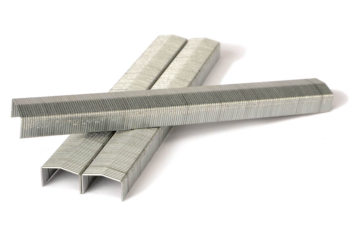 STCR2619 1/4-inch Bostitch powercrown staples, 7/16 Crown, 24 Gauge. Galvanized, Chisel point. Made in Europe.