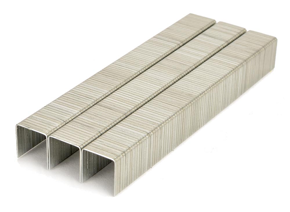 Duo-Fast 50 series fine wire staples by Fasco. Galvanized, Chisel point. 1/2" crown, 1/2" leg length, 20 Gauge. Made in Europe.