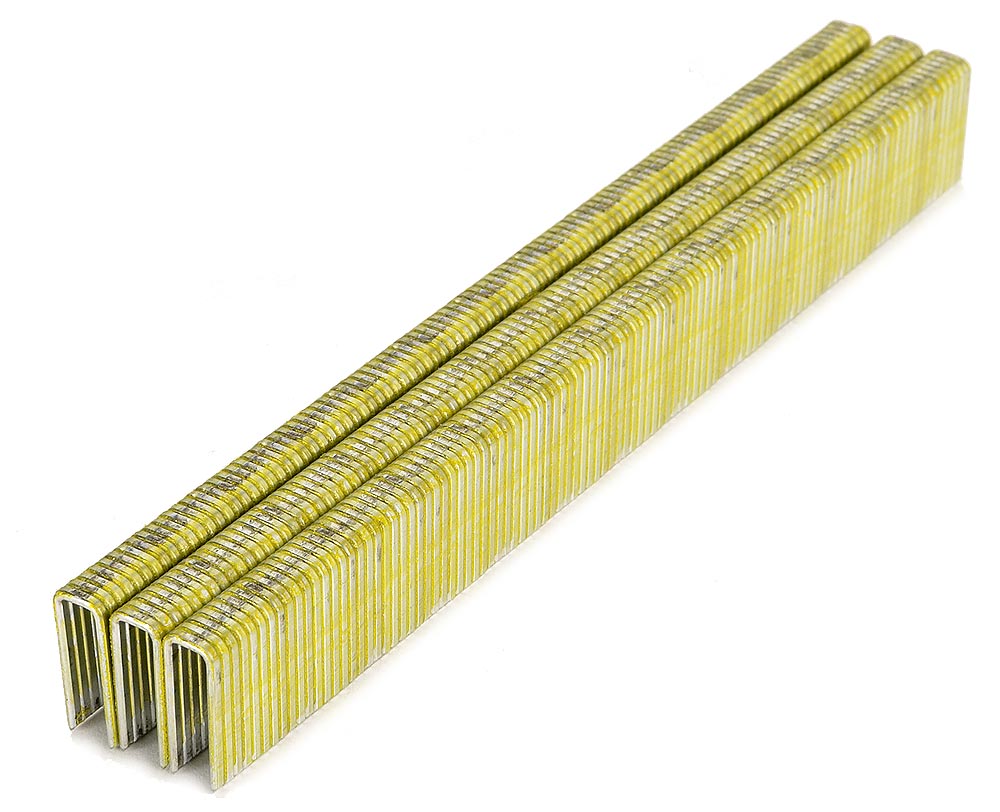 Senco L series staples 5/8-inch leg length, 1/4 crown 18 gauge. Galvanized, 5,000 staples per box. Fasco brand, made in Europe.