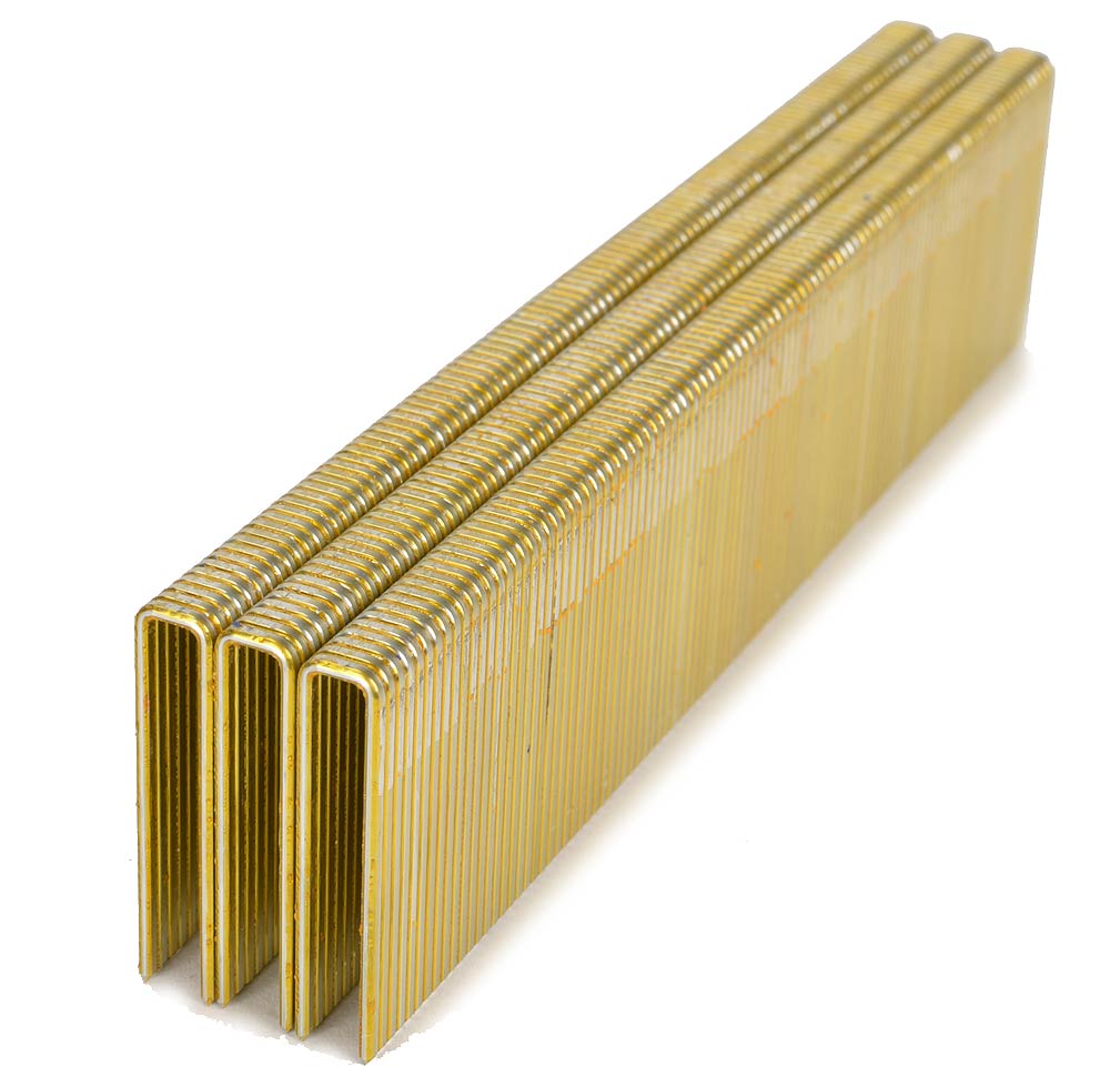 Senco L series staples 1-1/8-inch leg length, 1/4 crown 18 gauge. Galvanized, 5,000 staples per box. Fasco brand, made in Europe.
