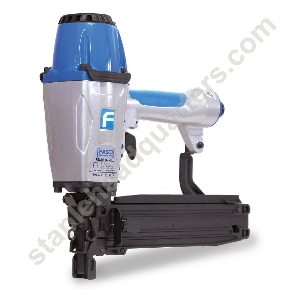 Fasco F44AC G-50TL pneumatic staple gun. It replaces Fasco F44C G-50 TL. Uses Senco N 7/16" crown 16 gauge staples, 1" - 2" leg length. Staples are similar to Hitachi N5008AA, N5008AC, Atro 100, BeA 16, Prebena L, Haubold KG700, Porter Cable MS200, Max TA551, Fasco R4P G-50 CT, CLR3C G-40CT, Bostitch 16S5. Stainless steel staples available.
