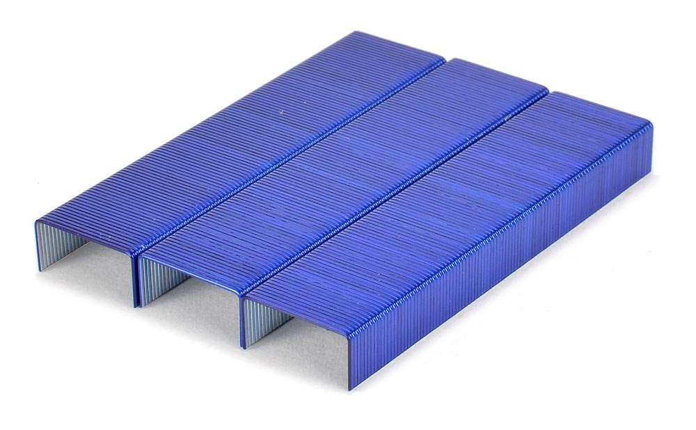 Standard office staples 1/4-inch length. Blue. Galv. 1,000/box.