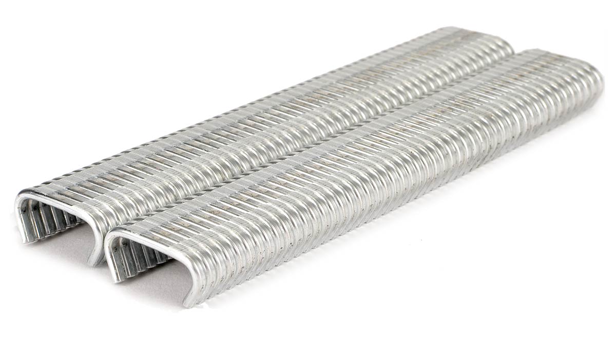 9/16-inch D-ring staples, 15 Ga, Blunt, Galv. 2,500/box.