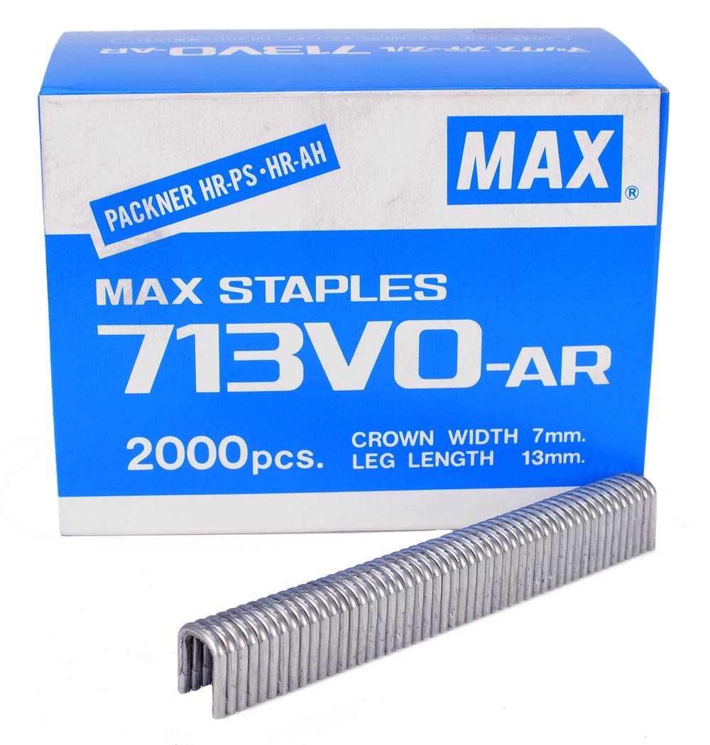 Max 713VO-AR hog rings for Max Packner. Aluminum, 9/16-inch, 2,000 rings per box. Made in Japan.