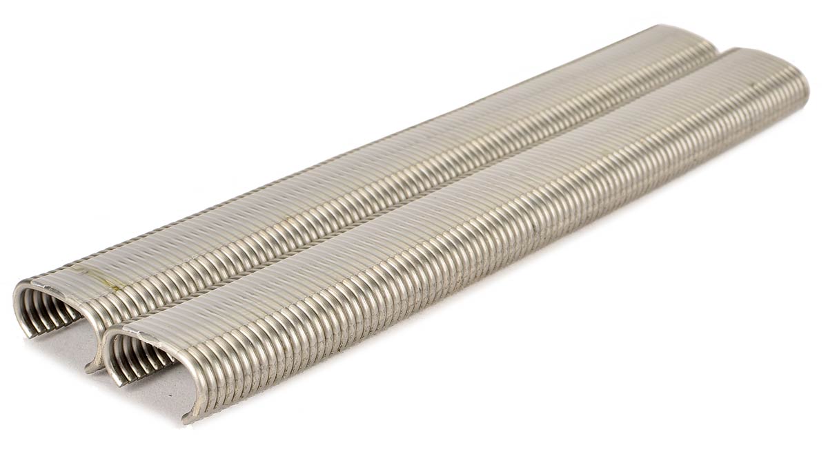3/4 inch hog ring staples 15 Ga, Blunt. Stainless Steel. 10,000/box. Salco brand.