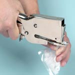 Salco P694 BS plier w/ bag sealing anvil for heavy duty applications such as chicken/product bag sealing and ice bagging. Uses JK 310, JK 694, STCR5019 crown and STH5019 staples from 1/4" to 1/2". Stainless steel staples are also available.