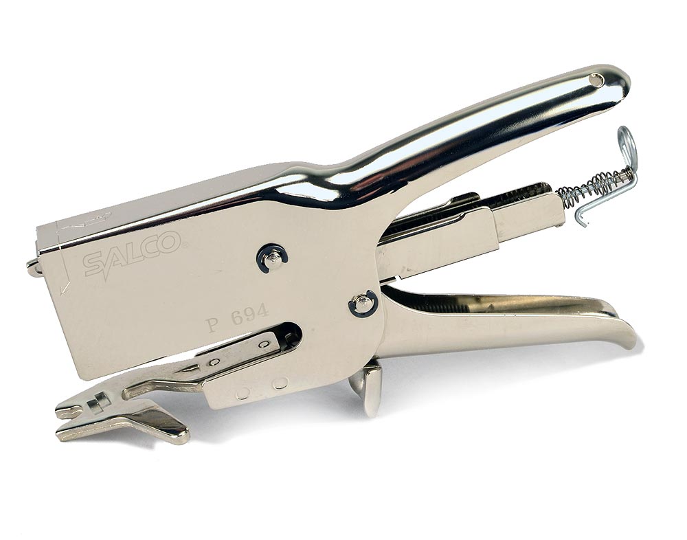 Salco P694 heavy duty pliers staplers offer exceptional ease of operation. Their powerful clinching action makes this plier stapler a must in every shipping and mail room. Pliers are available in 3 models - standard, sword point and bag sealer.