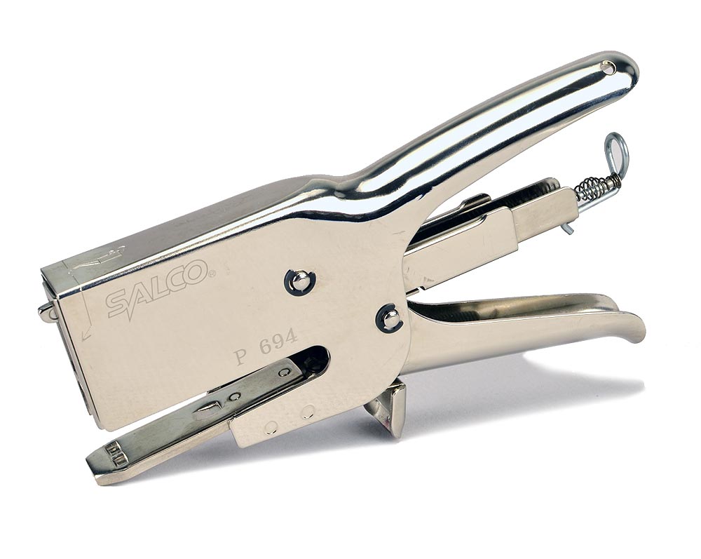 Salco P694 heavy duty pliers staplers offer exceptional ease of operation. Their powerful clinching action makes this plier stapler a must in every shipping and mail room. Pliers are available in 3 models - standard, sword point and bag sealer. P694 standard plier is similar to Bostitch P6C-8 and Rapid 31.