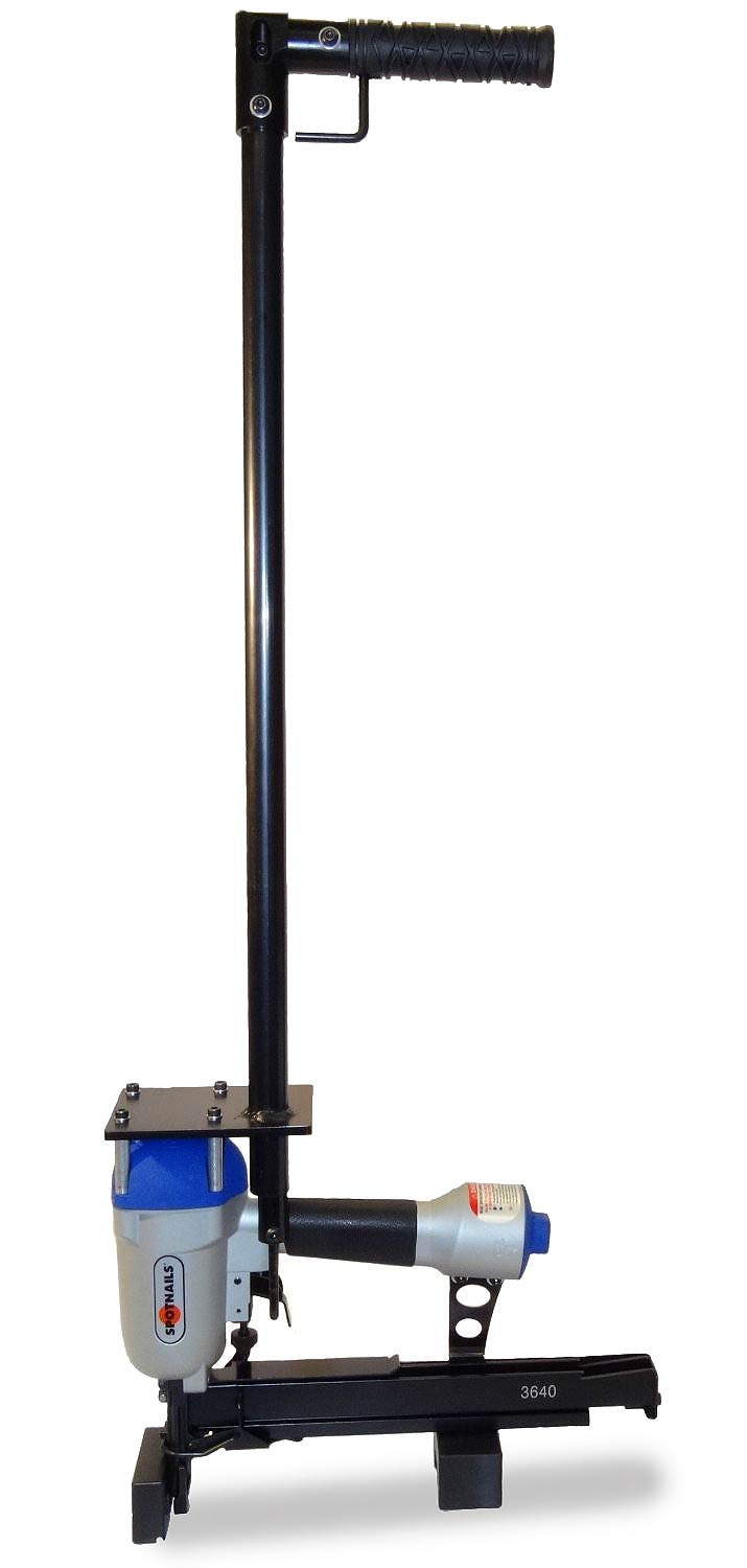 Spotnails X1S3640RFH Radiant Floor staple gun. The tool is a replacement for the XS3640RFH floor stapler. Uses 1-inch crown 16 Gauge Spotnails 3600 staples, similar to Senco P and Duo-Fast 1700 - from 1-inch up to 1-1/2-inch staple length.
