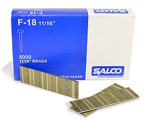 F18 brads, Galv. 5,000/box. Used in F18 brad nailer. Salco brand.