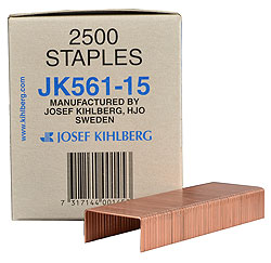 JK561-15 5/8-inch leg staples for CCC Red Line series, all Container Stapling Corp. King Size series Staplers, Duo-Fast DF-FC6C, DF-PC6C, DF-HC7C, and DF-AC8C Staplers, all DWS (Acme). Made in Sweden.