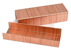C-78 C-type staples, JK561 interchange. 7/8-inch leg. 1-1/4-inch crown. Liquor finish copper.