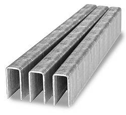 92 series staples 3/8 inch leg, 18 gauge. Galvanized. Divergent. Similar to BeA 92/192, Atro 92, Bostitch SL5035, Spotnails 5800, Prebena H. Made in Europe.